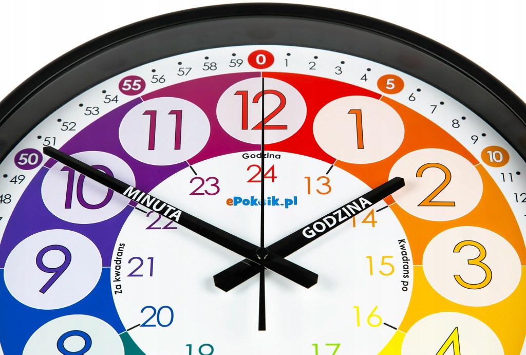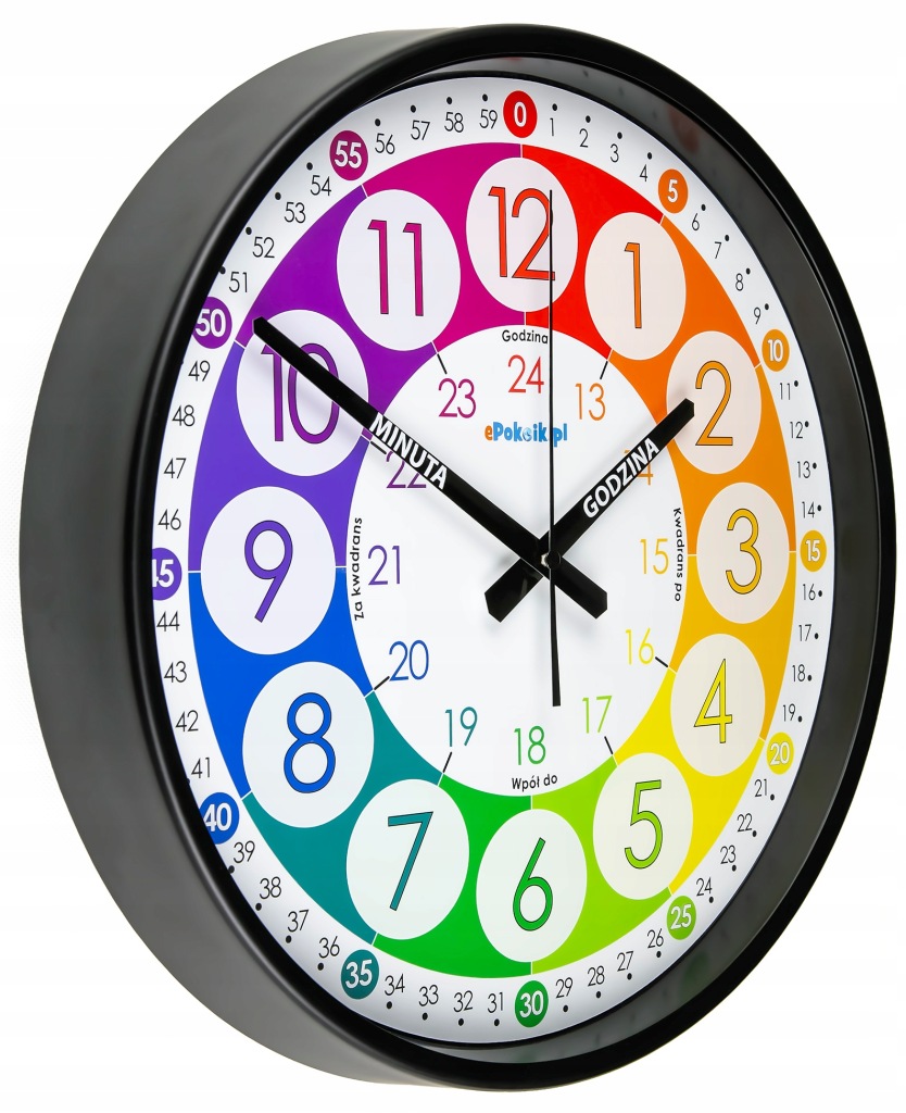 EDUKACYJNY ZEGAR ŚCIENNY DLA DZIECI, POMOC DYDAKTYCZNA