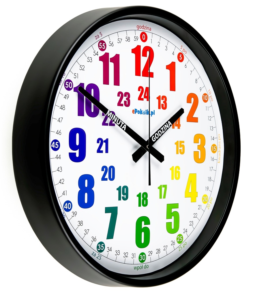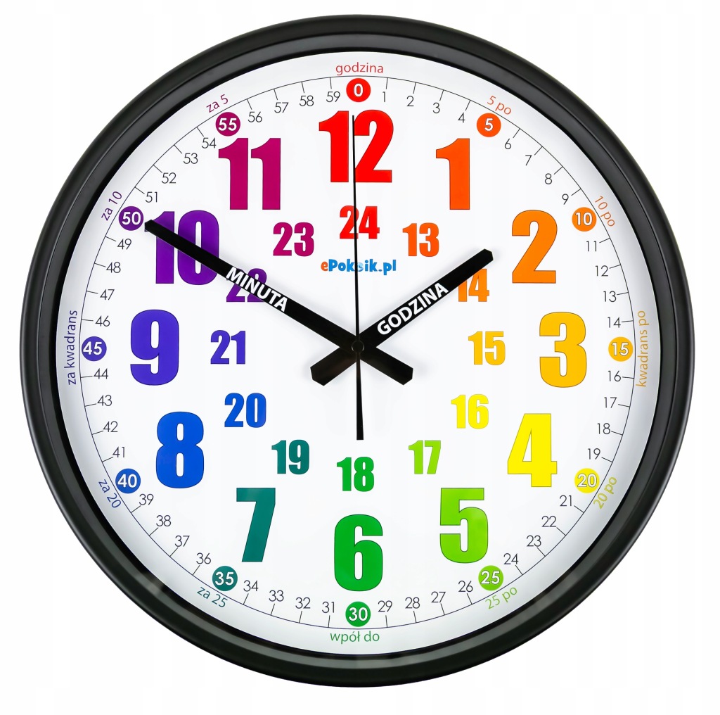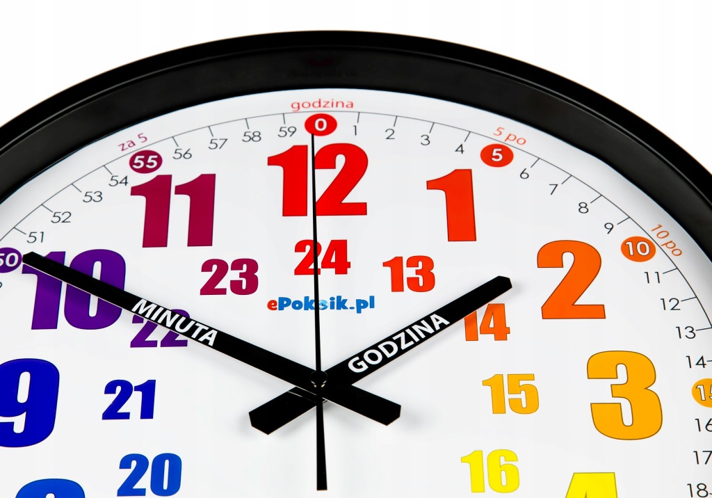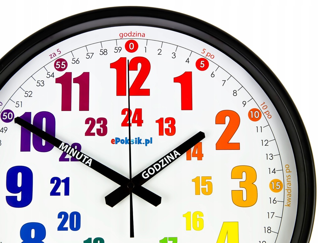 EDUKACYJNY ZEGAR ŚCIENNY DLA DZIECI, POMOC DYDAKTYCZNA