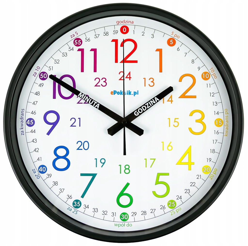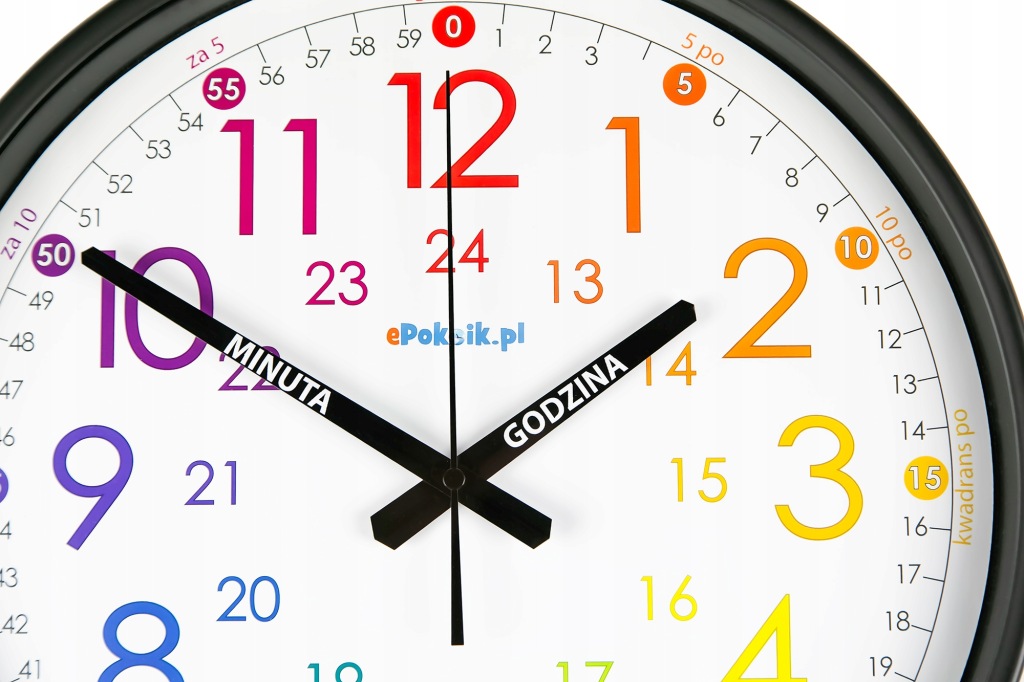 EDUKACYJNY ZEGAR ŚCIENNY DLA DZIECI, POMOC DYDAKTYCZNA