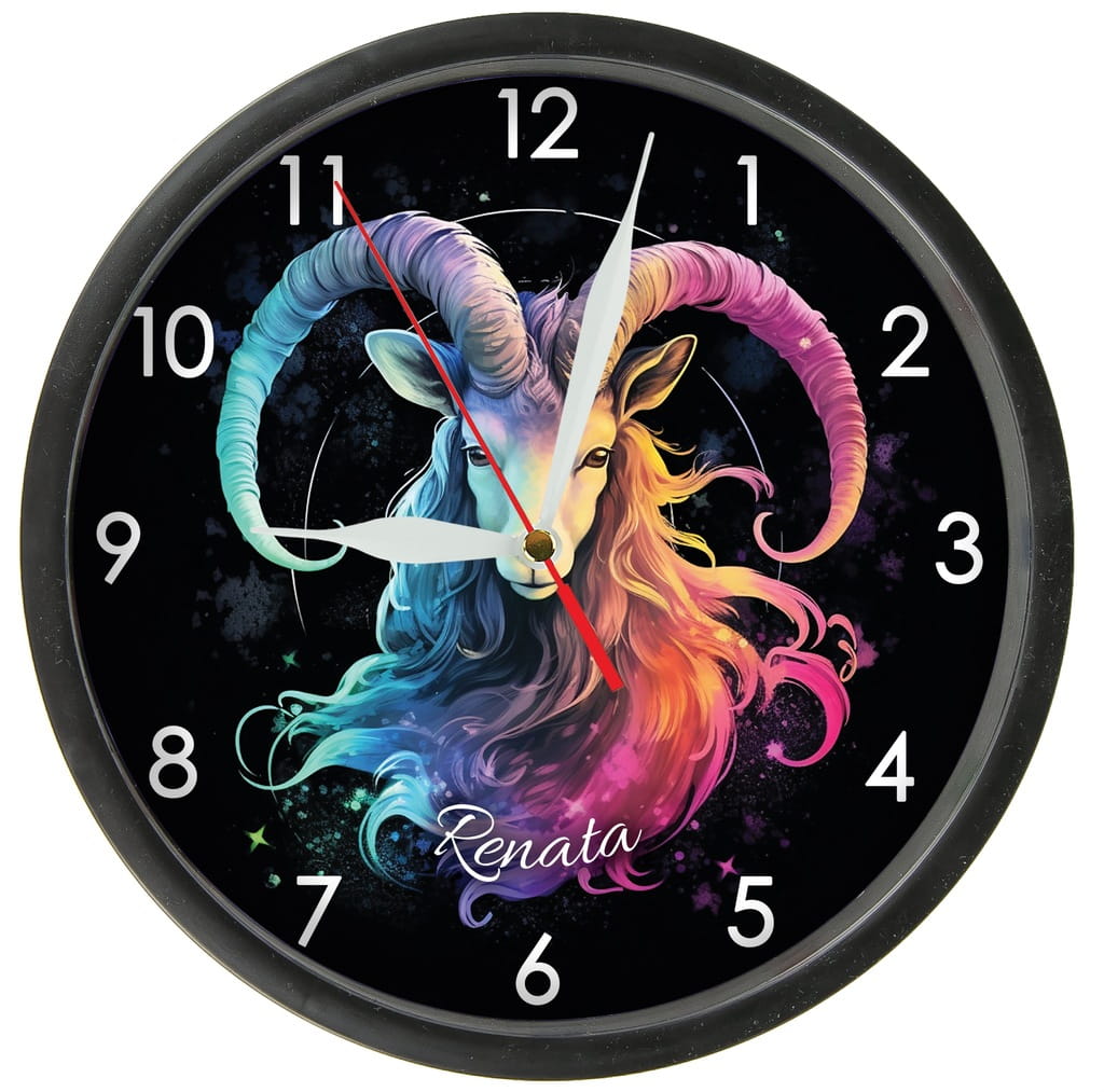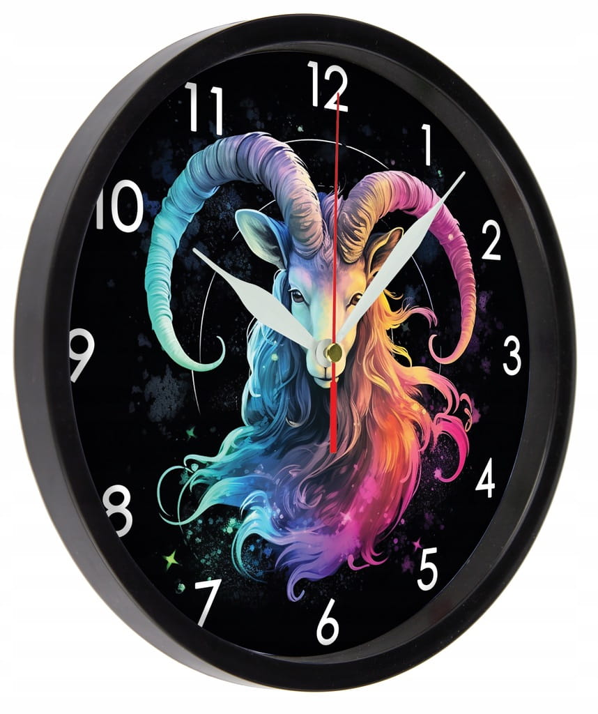Znak zodiaku KOZIOROŻEC zegar ścienny z szybką Bezgłośny mechanizm